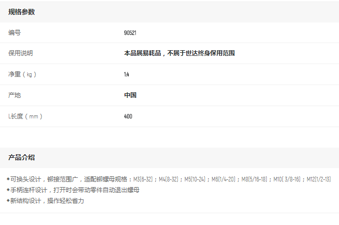 首頁>產品中心>其他手動工具>拉鉚槍>世達手動鉚螺母槍