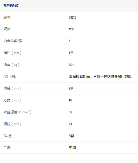 產(chǎn)品名字:世達(dá)5件套粗牙機(jī)用絲錐M12*1.75mm