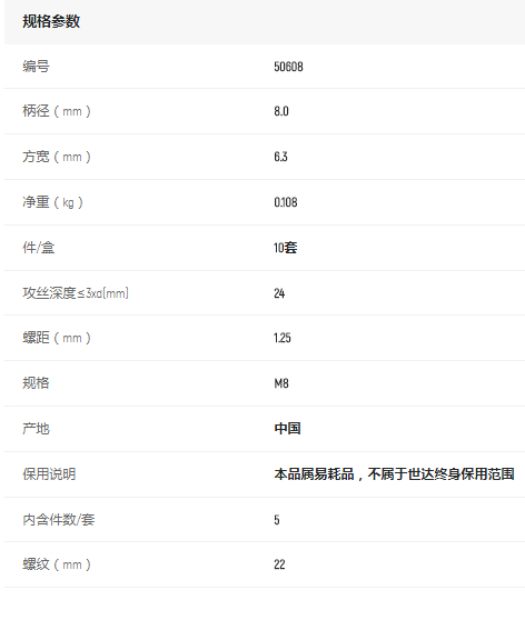 首頁>產(chǎn)品中心>螺紋刀具>其他螺紋刀具>世達5件套高速鋼粗牙機用絲錐M8x1.25MM