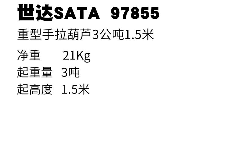 產(chǎn)品名字:世達(dá)重型手拉葫蘆3公噸1.5米